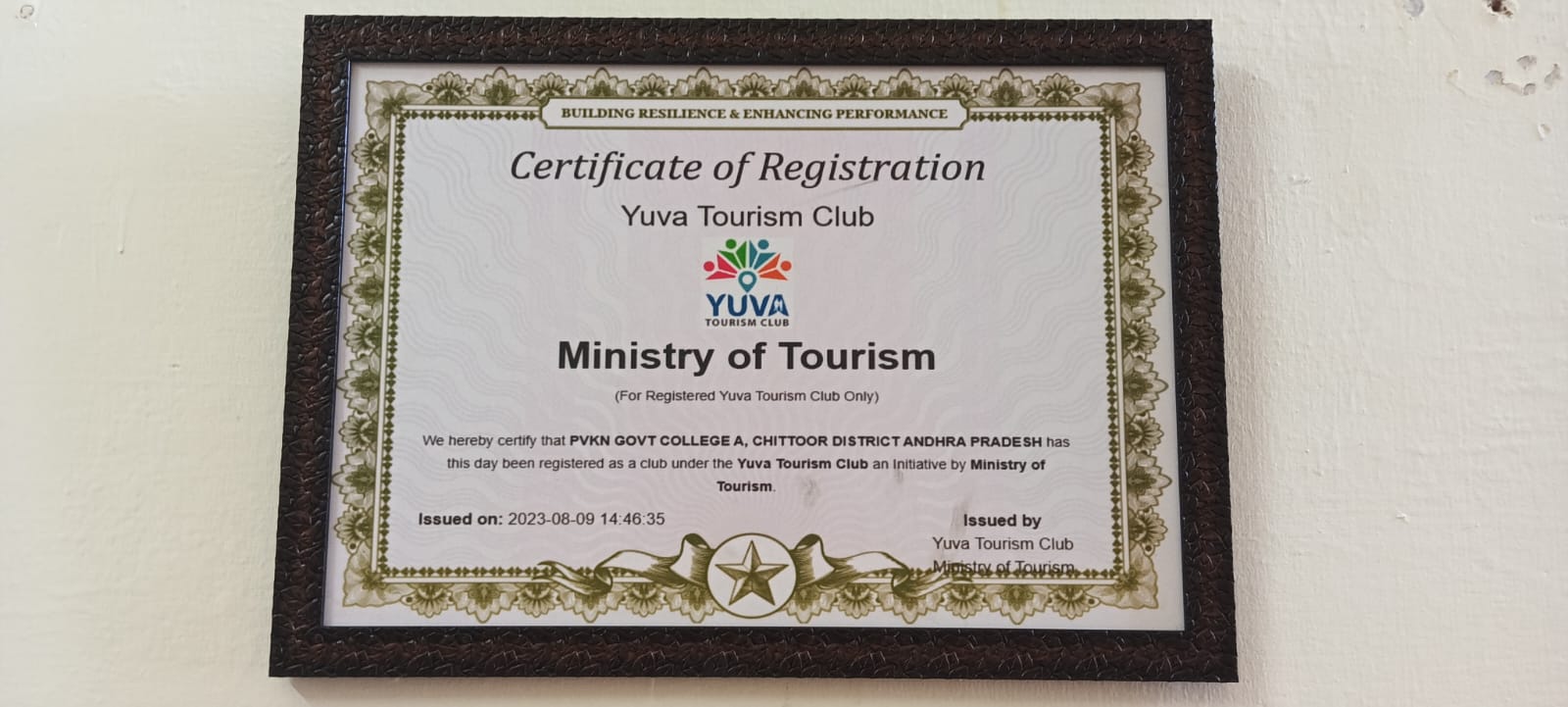 Alumni Association Registration Certificate